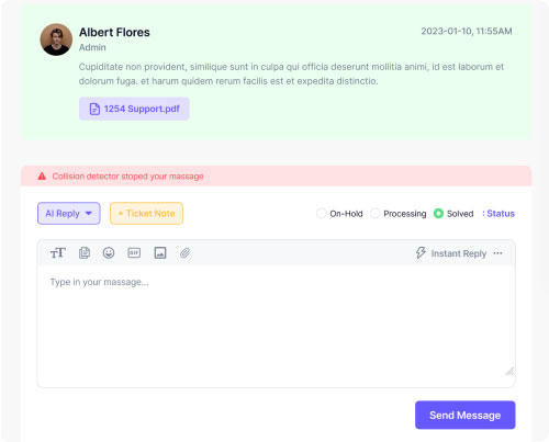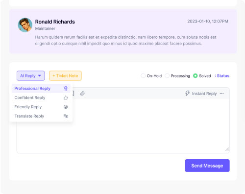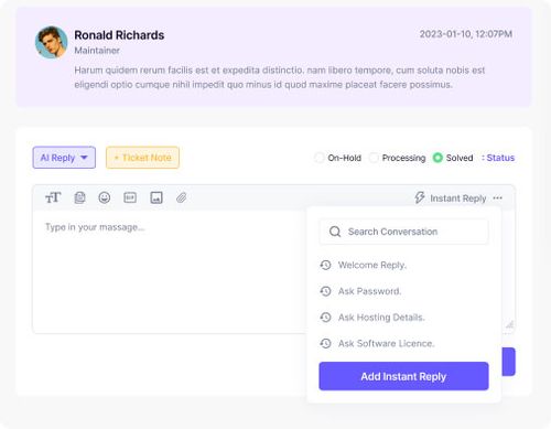The 'Add Instant Reply' feature in our support ticketing system empowers agents to swiftly address common queries. With pre-defined responses, agents can provide accurate solutions promptly, enhancing customer satisfaction and efficiency.